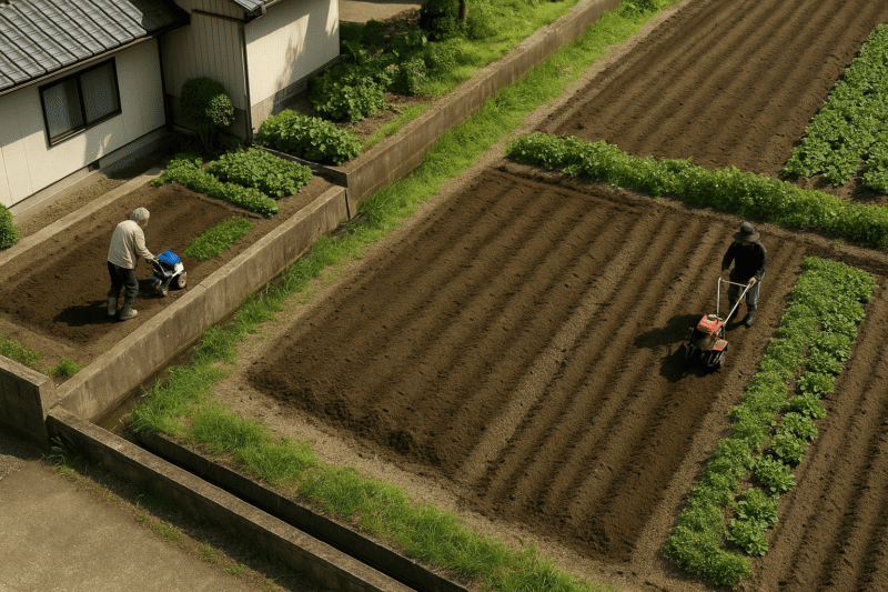 小規模農地や家庭菜園では、耕運機を購入・保有するほうが費用対効果が高く、一方で、広い圃場ではトラクターをレンタルして使うほうが経済的なケースもあります。